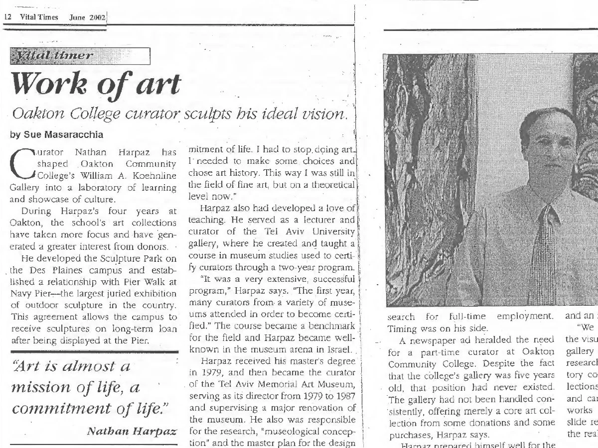 Chicago Tribune, "Shout Out: Nathan Harpaz, Oakton art museum manager and curator," May 2018.
